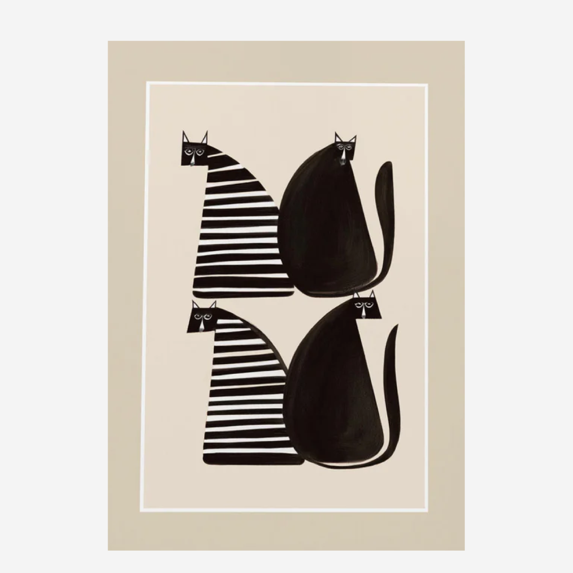 Discover elegance in simplicity with the Minimalist Cats In Black and White PFY Art Print. Featuring sleek black and white cat silhouettes against a warm beige background, this print adds a subtle yet captivating touch to any space. Perfect for lovers of modern design and feline charm, it effortlessly complements both contemporary and classic decor.