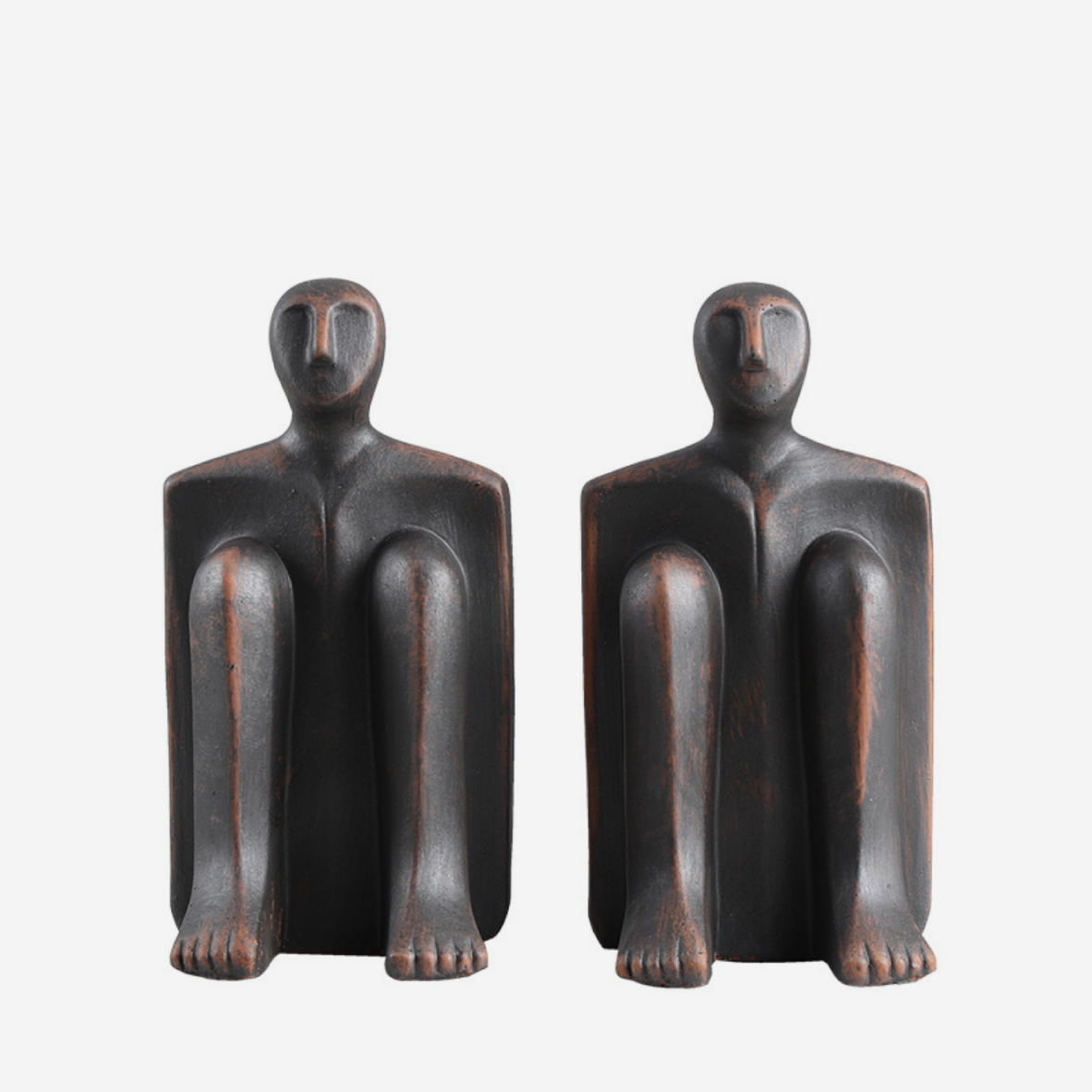 The Back to Back Bookends pair brings quiet sculptural presence to bookshelves and styled surfaces. Each piece is cast in resin and shaped into a seated figure, their simplified forms adding artistic depth without overwhelming a space. Used together, they create both balance and visual weight, making them as functional as they are decorative. Their minimal, handcrafted aesthetic complements contemporary, earthy, and curated interiors alike.